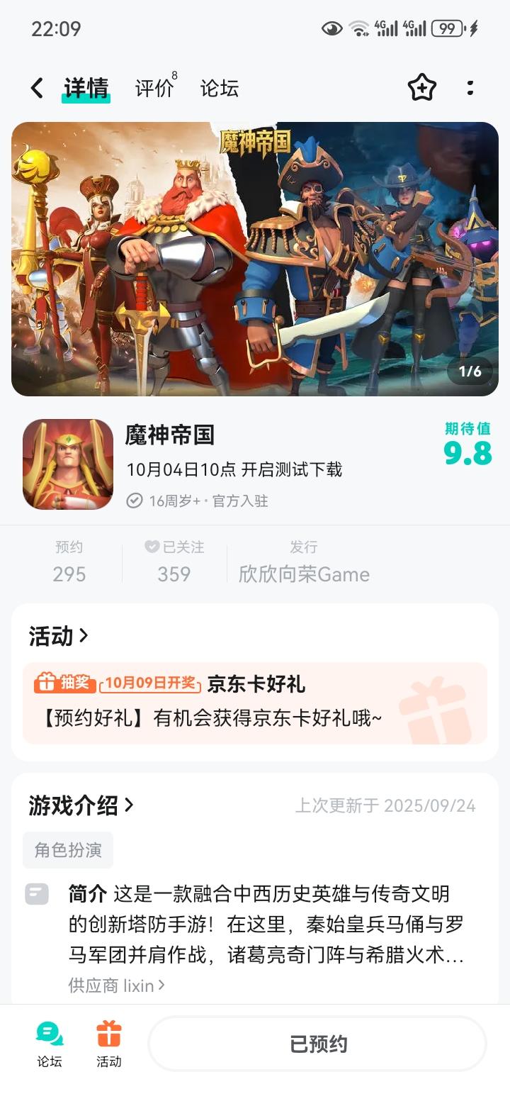 家人们注意啦!期待已久的《魔神帝国》将于10月 31日 正式首发!为感谢大家的等待,特意准备了首发专属京东卡抽奖福利,轻松参与就能赢取好礼,千万别错过!首发时间:10月 31日 00:10【京东卡抽奖活动】▶ 参与方式1.点击关注《魔神帝国》并发新帖晒截图2.在本帖下方评论区分享发帖链接即可【奖品发放】到达开奖时间后,由taptap系统随机抽取符合要求的幸运玩家,自动发放兑换码(对于