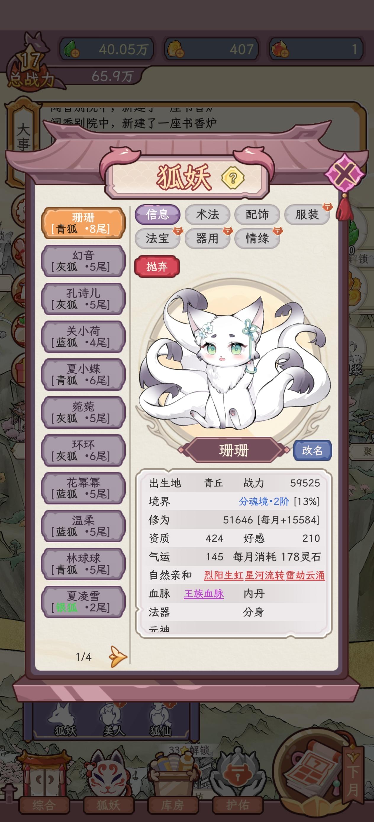 笑死,这个圆满功能不说把内丹升满就算了,还把好好150的混元内丹降低成了120的神纹内丹了。还有就是这部就不能不开后宫每种狐狐只养一两只嘛,非要养那么多的话,你送礼能不能多几种自动选项啊,我不想只养最好的,我想公平点想雨露均沾大家都有份!