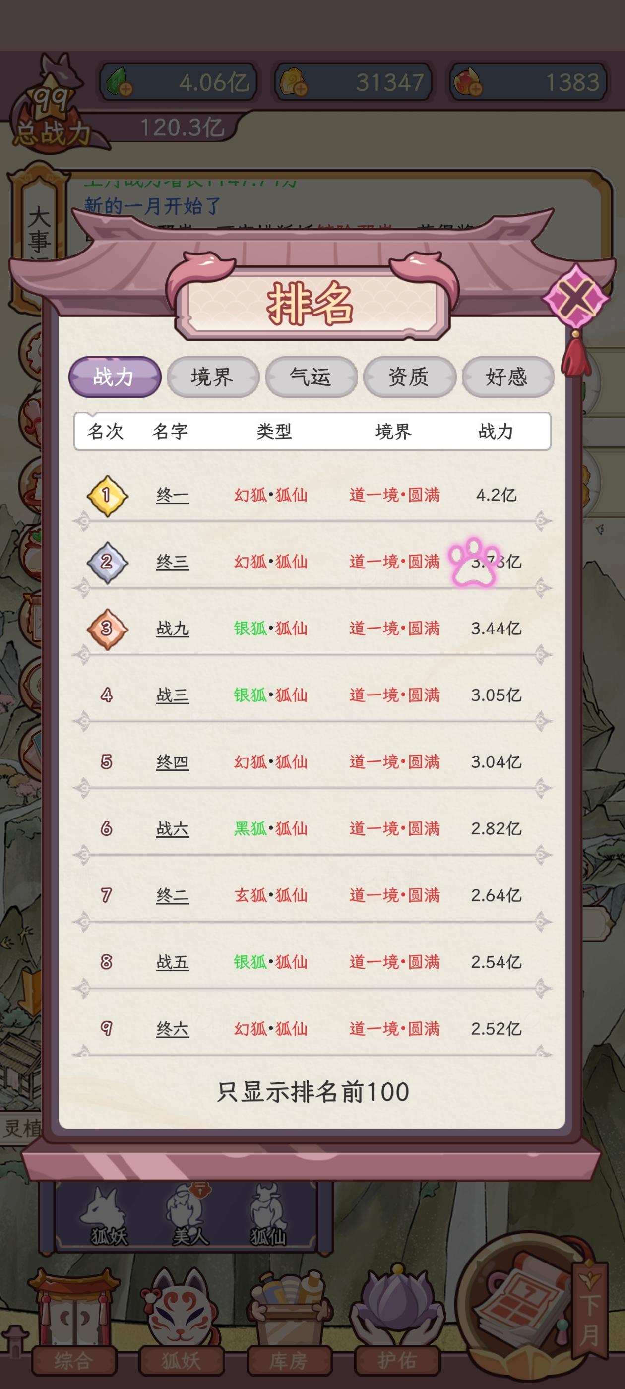 主旨是尽量少看广告,实在看不动了。收留的狐妖天赋:❶活宝+六边形战士❷活宝+二折小能手。(能接受看广告的话活宝+在逃模特也很好)总收留数量10+,除了需要的两个天赋,额外有第三天赋狠人/在逃模特的都是上位替代,前期勇也搞三四只。❷的收留数量根据黄晶石存款来调整,因为需要花黄晶石买饰品。看广告把天赋都拉到十级。必花黄晶石的地方(不够就看点广告吧):①事件枕头/泼水大战增加狐妖数量②游历必点