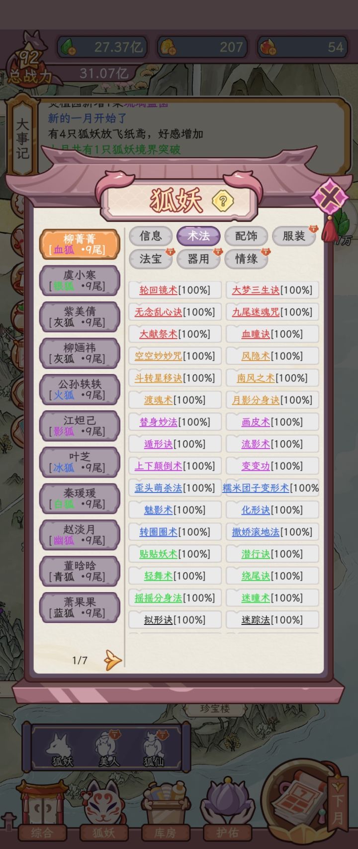 每个颜色的幻术只有6种吧,肝到92级了,都没让狐狐化形