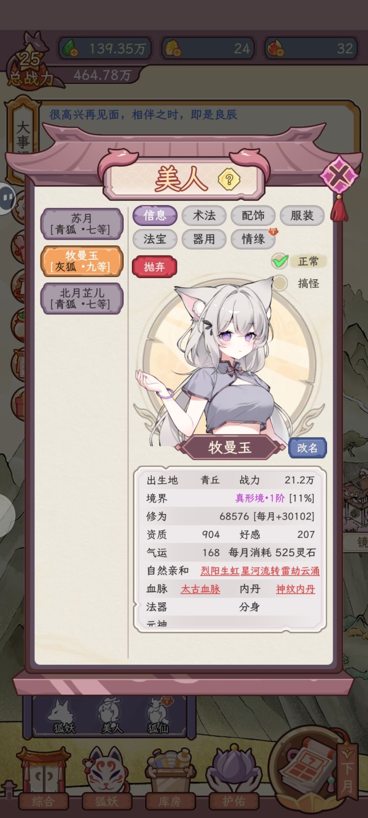 玩了差不多两三个星期,满图鉴了#狐仙美人养成日记 #游戏日常