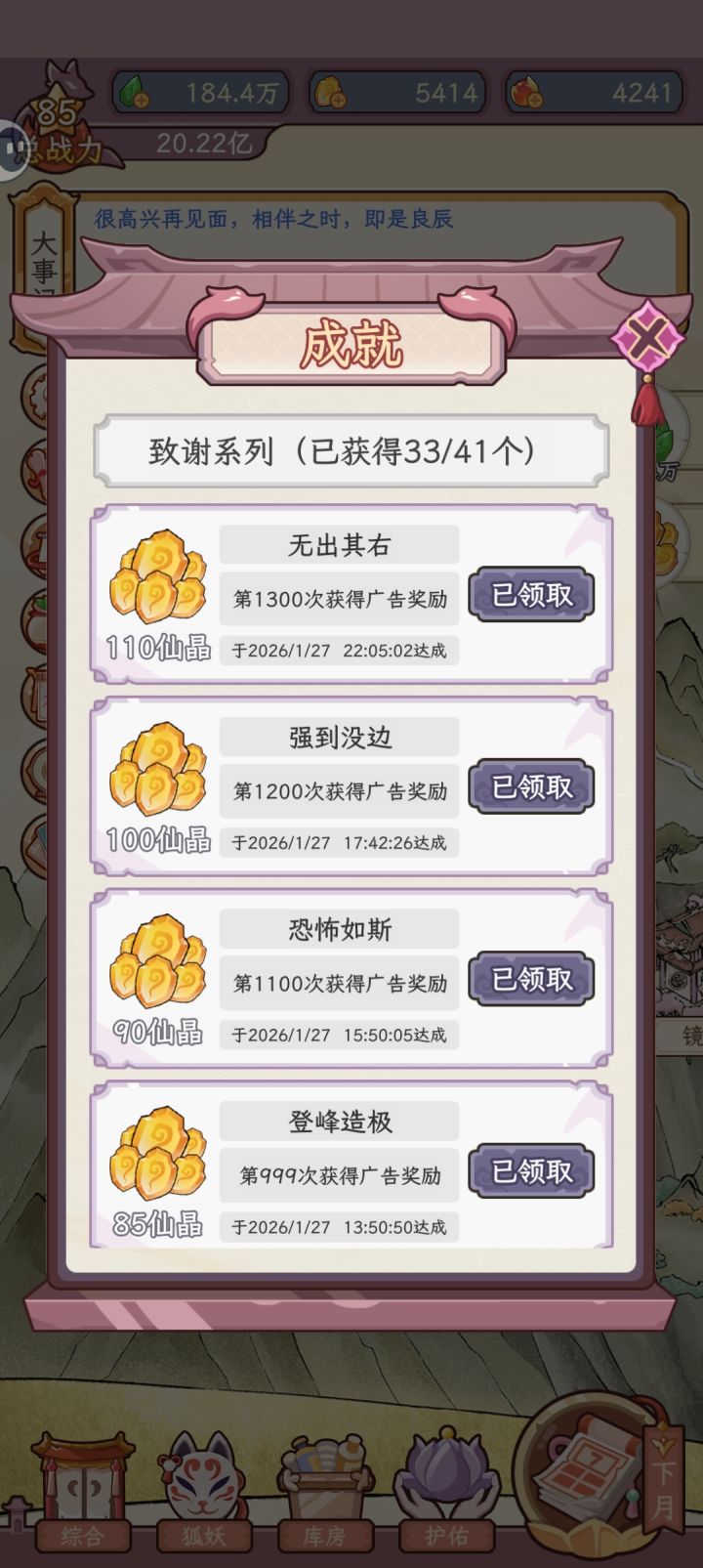 能在27天给一个游戏看两百多个广告已经是我的极限了 狐3挺住啊,可不要像前两部运营不下去啊#狐仙美人养成日记#游戏数值