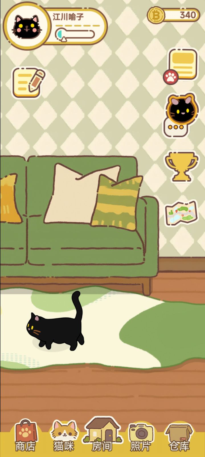 测试补充:画风治愈,完成任务成就有金币,可以买家具,装饰小家,抱它太多次都生气了😂,轻松实现赛博养猫时不时上来看看它在干嘛。