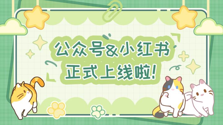 各位亲爱的猫友们,大家好:告诉大家一个好消息!我们的官方公众号和小红书正式开通啦!欢迎大家关注一波吖!大家可以通过以下方式关注我们:官方公众号:微信搜索:领养一只流浪猫或者扫描下方二维码:官方小红书小红书搜索:三花工作室 (注意查看ID为:424787939)或者扫描下方二维码:这里也要感谢一直以来对我们关注的猫友们,感谢大家在去年11月参与首测时对我们的包容、鼓励和热情的建议