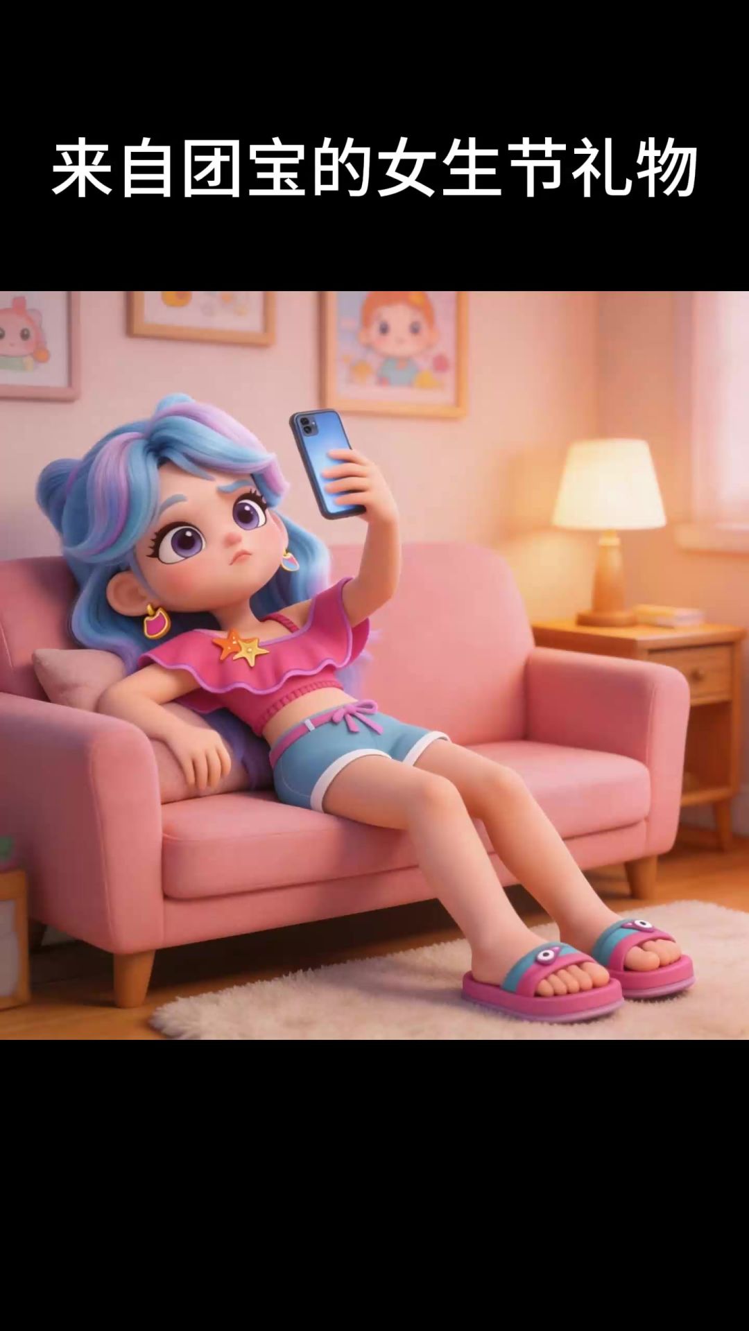 女生节拆开团宝的粉色礼盒
