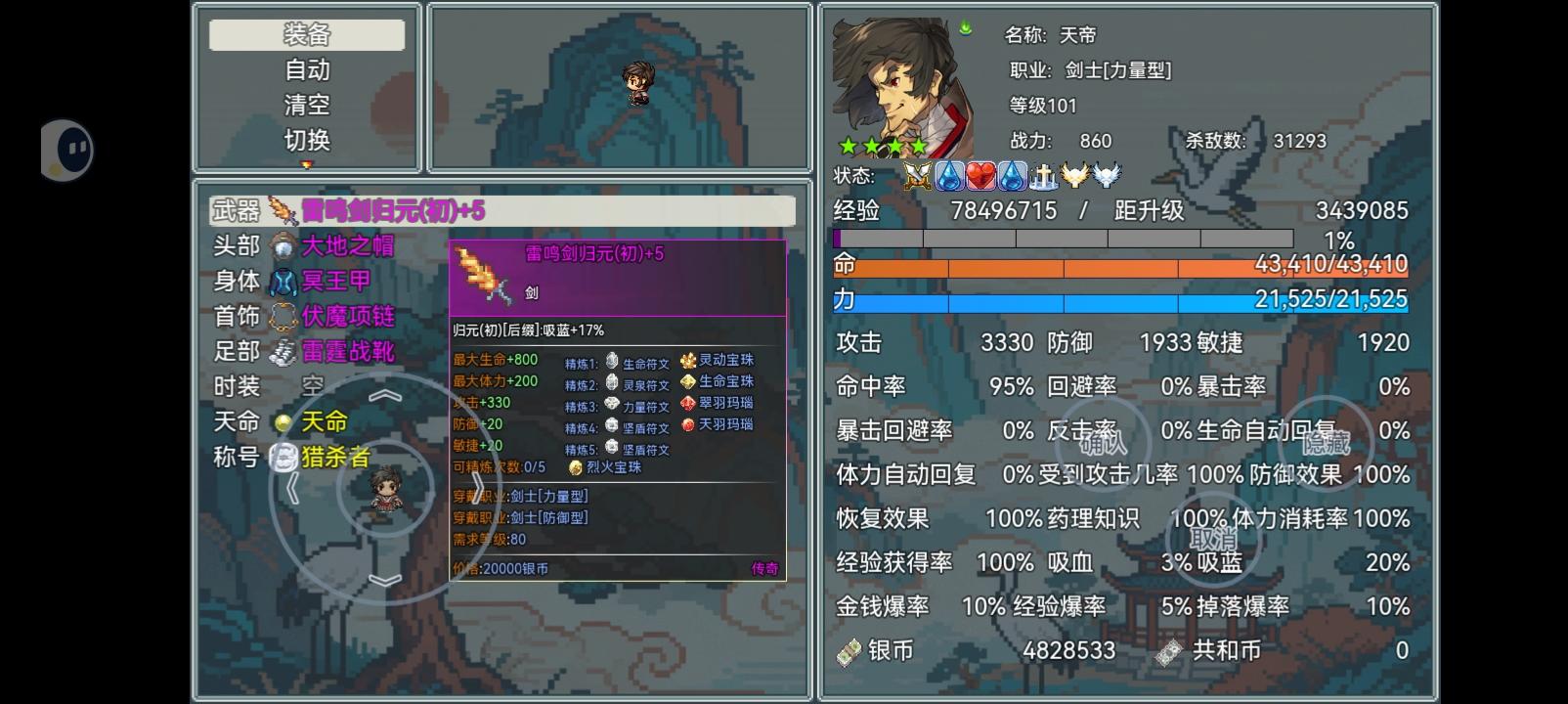游戏开局建议sl一下装备在去打怪,武器有攻击,吸蓝吸血属性,项链暴击,防御也很重要