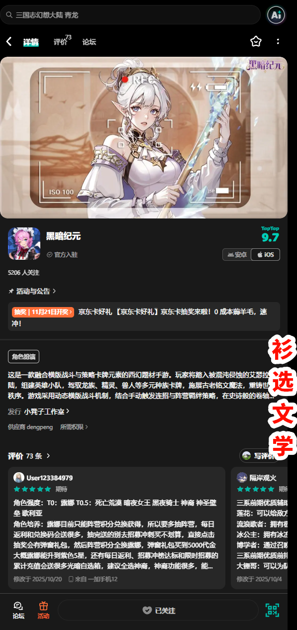 参与方式:关注游戏 + 关注发帖账号 + 回复活动帖