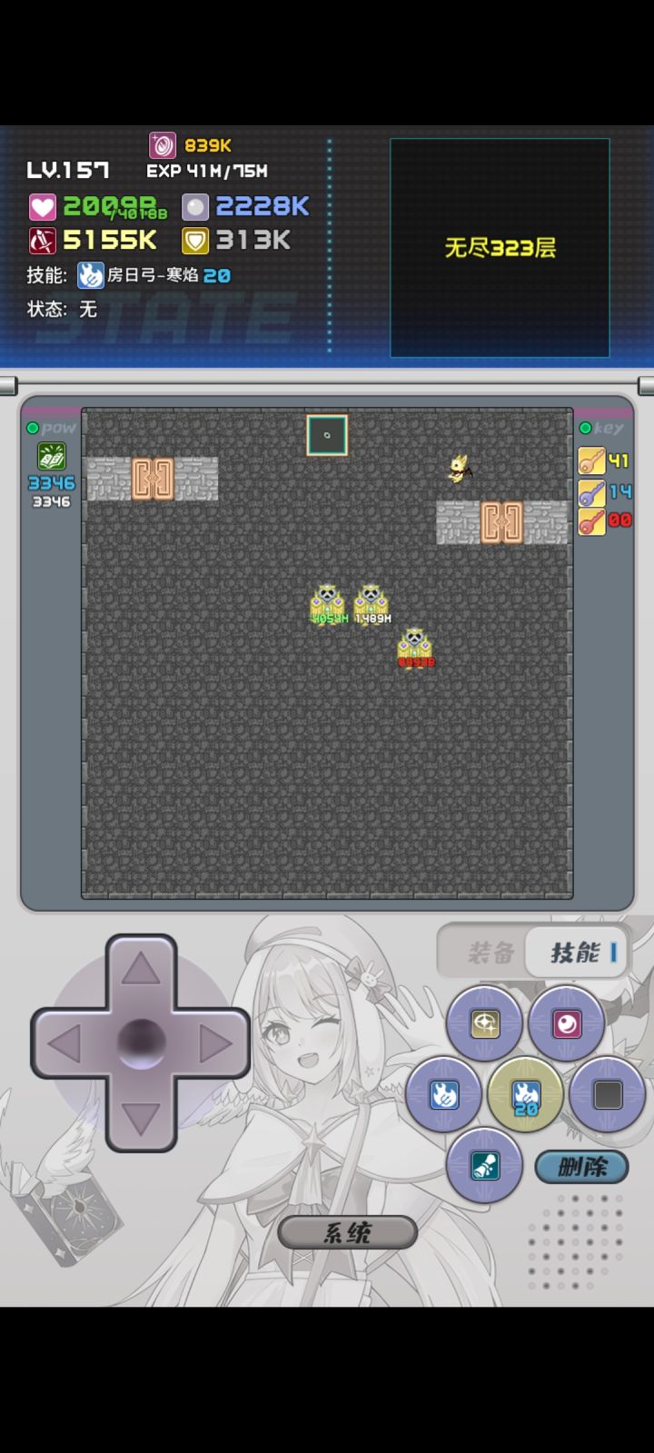瑞比&小怜游戏种子:[85413944]初始奖励等级:12----区域2---00:19:56血量:491/攻击:61防御:61/魔防:60金币:86/等级:12装备:魔导书-小改/未解锁/未解锁未解锁/未解锁/未解锁钥匙:2/0/1----区域3---00:40:15血量:177/攻击:172防御:172/魔防:84金币:1325/等级:21装备:魔导书-小改/急