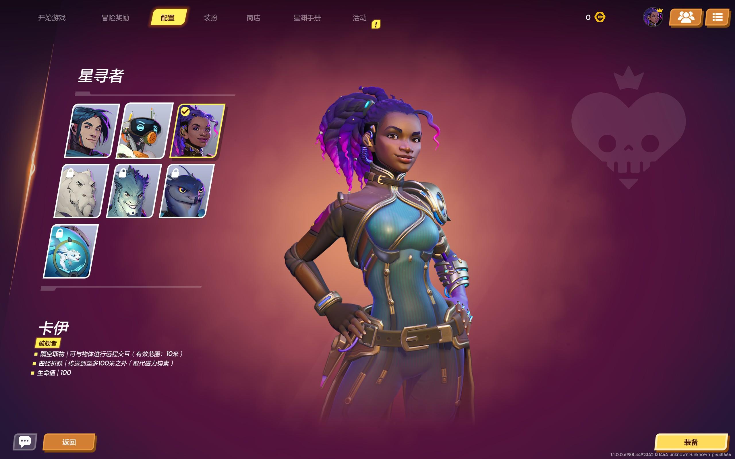 在开始游戏前,玩家可以自由搭配选择星寻者与装备,每位星寻者能力各异,比如卡伊,她可以隔空取物、传送位移;探景,身为机器人无需氧气以及更快的回复,而装备选择上会有功能型和攻击型可选,应对不同情况。