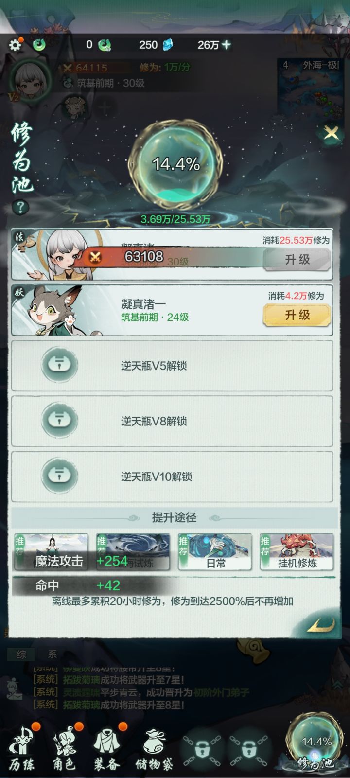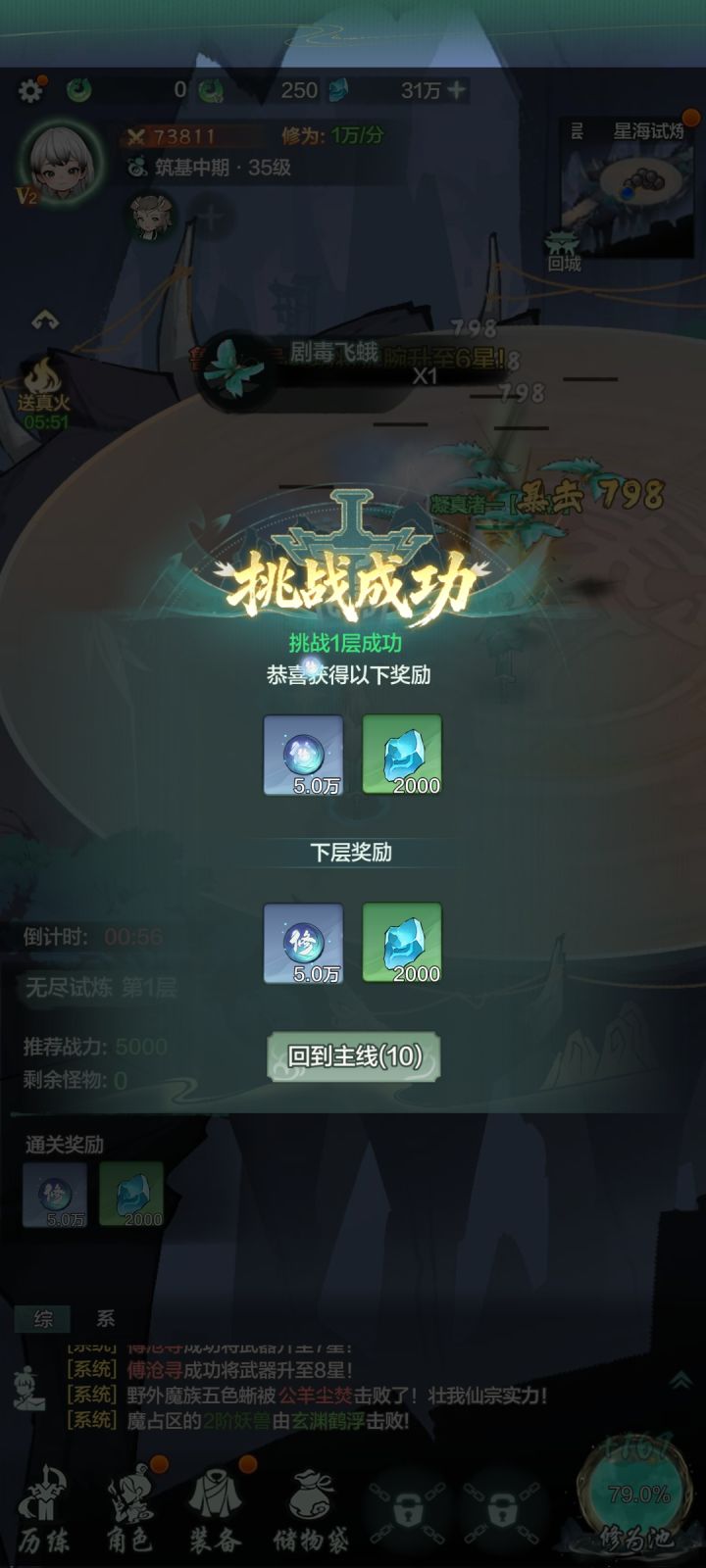 第一次玩修仙类游戏,不知道算不算玩得海星,感觉美术不错,升星成功也挺有成就感的