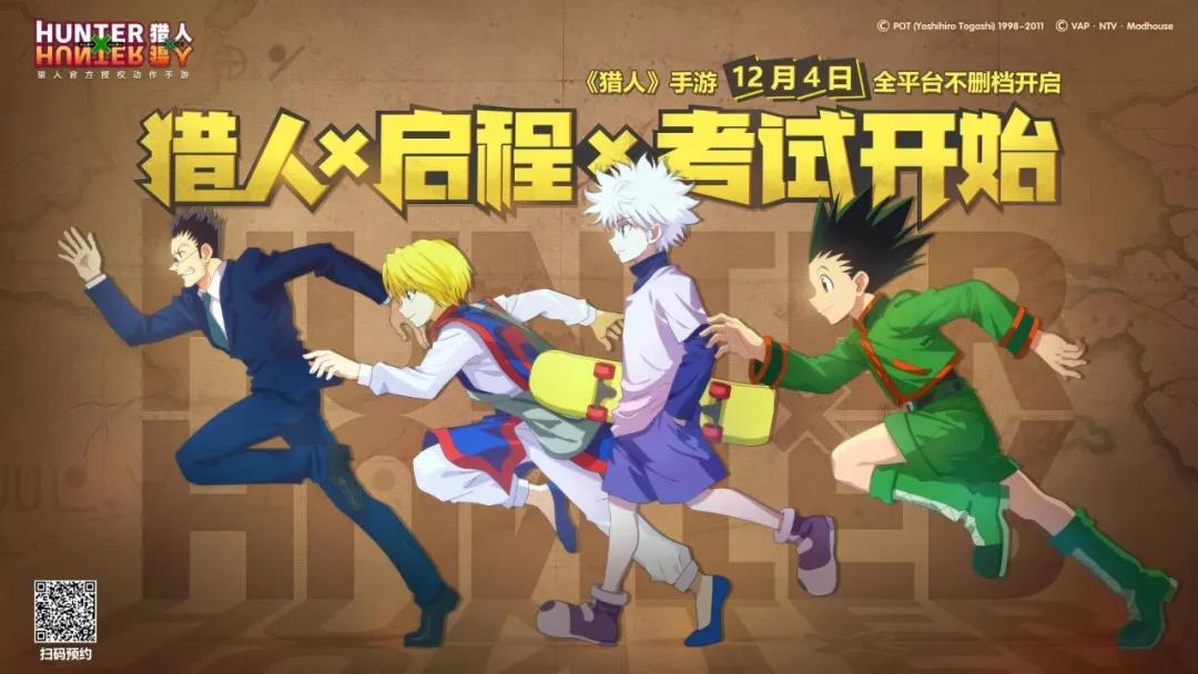 历时数载,一鸣惊人!在万众期待之下,由《HUNTER×HUNTER(猎人×猎人)》(粉丝常用名:全职猎人)动画制作委员会正版IP授权、腾讯游戏发行、蓝图游戏研发、创想者株式会社辅助监修的横版动作手游——《猎人》将于12月4日开启全平台不删档!还未预约的玩家抓紧时间,抢先预约领取好礼! 届时,各位猎人粉丝可以和小杰、奇犽等人物一起,亲历猎人考试,参加天空竞技场挑战,探索神秘的猎人世界。 【剧情角色×