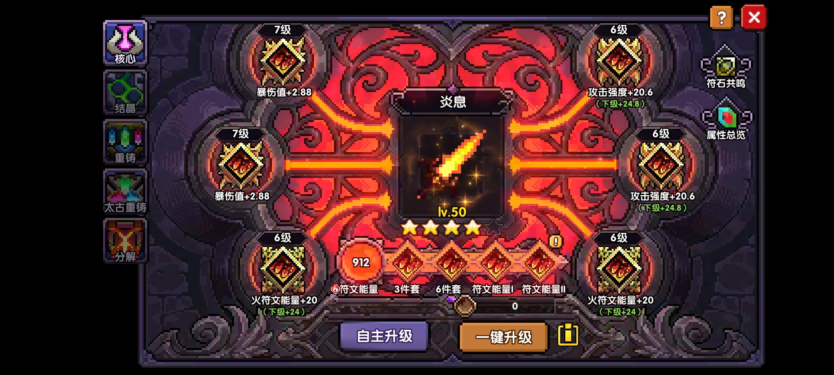 此帖主要给萌新初步了解游戏里需要做哪些装备,优先级是怎样,大概有个框架,不至于没有方向,那下面就各个模块来介绍。1、武器赛博系列的赛博木、赛博火(世界、大秘境对王)魂契系列的魂契木、魂契水、魂契火(大秘境对群)异闻系列的异闻火(水晶)、异闻水(坩埚)(竞技场)※萌新打造优先级:赛博→魂契→异闻(或者等3个月后会出新的竞技场限定武器)2、防具通用套:离经叛道+吞火基础特性:救援·改(