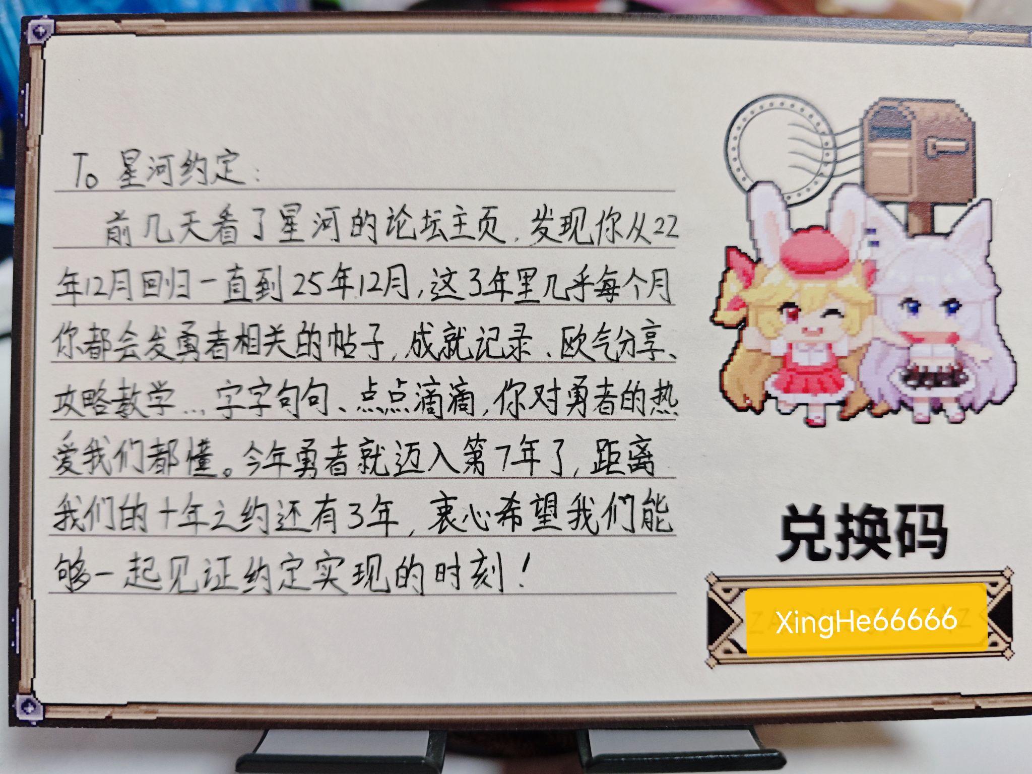 我的勇者【2026年线下特别节目体验感受】——星河约定版本次很荣幸得到了【我的勇者】官方的邀请来到了总部来做特别节目这一次依然是以代表牧师玩家的身份去参加这一次线下首先要我唠叨一下当我看到这一个手写信时还是有点懵逼的,我都不知道我退游过(如果一天退游10小时都算是退游那么我算是经常退游的),直到我我翻到我这个账号发布的第一篇帖子的时候我好像有点恍然大悟了,当时的帖子是【我回来了,没错这一次