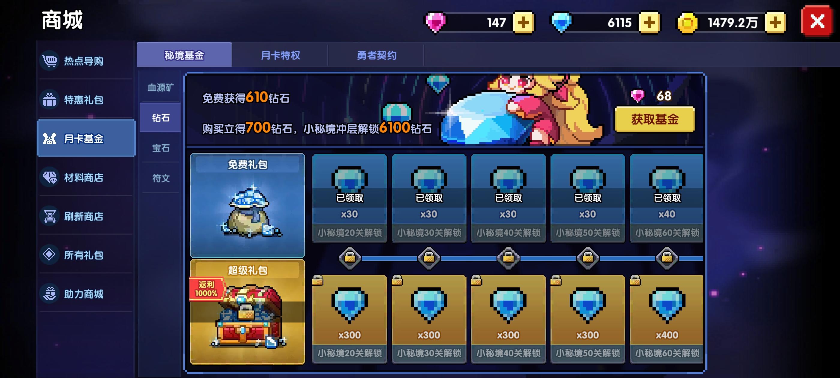 首先声明一下,这游戏中的氪金点太多了。对于新区开服,特殊活动(比如刮刮乐商场)这种,由于具有阶段性,因此虽然也值得氪金,但是不在本篇阐述。这里只说一下近期常规的氪金地方,以下排名不分先后,但是氪金到这里都不会亏太多,且是性价比较高的。以下排名不分先后:1.月卡。这两类月卡是非常赚的,30粉钻换取一个月稳定的2100钻石收入,是长期玩下去的氪金玩家每月必氪项目之一。尤其是对于新区来说,是不亏的