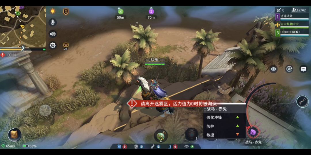 我真找到个BUG。骑马打架卡这了。不知道是被别武器打进卡的。动不了,死毒圈了