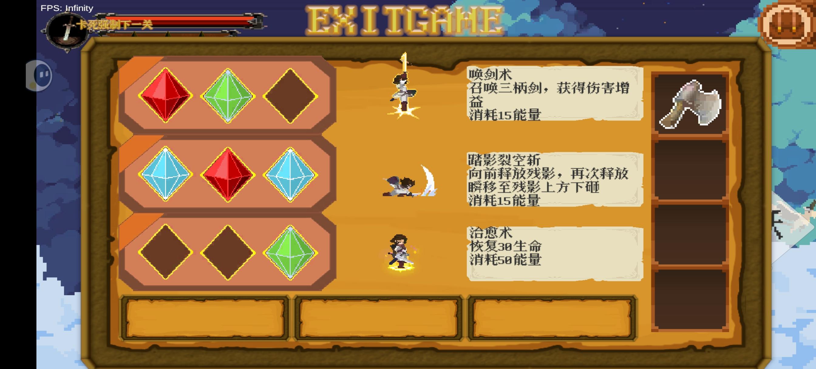 然后就是不能对着商店那个人使用踏影裂空斩,有概率影子会掉到下面去,然后你再放第2段就会卡到画面外,而且是按了卡死进入下一关都没用,会一直在画面外。