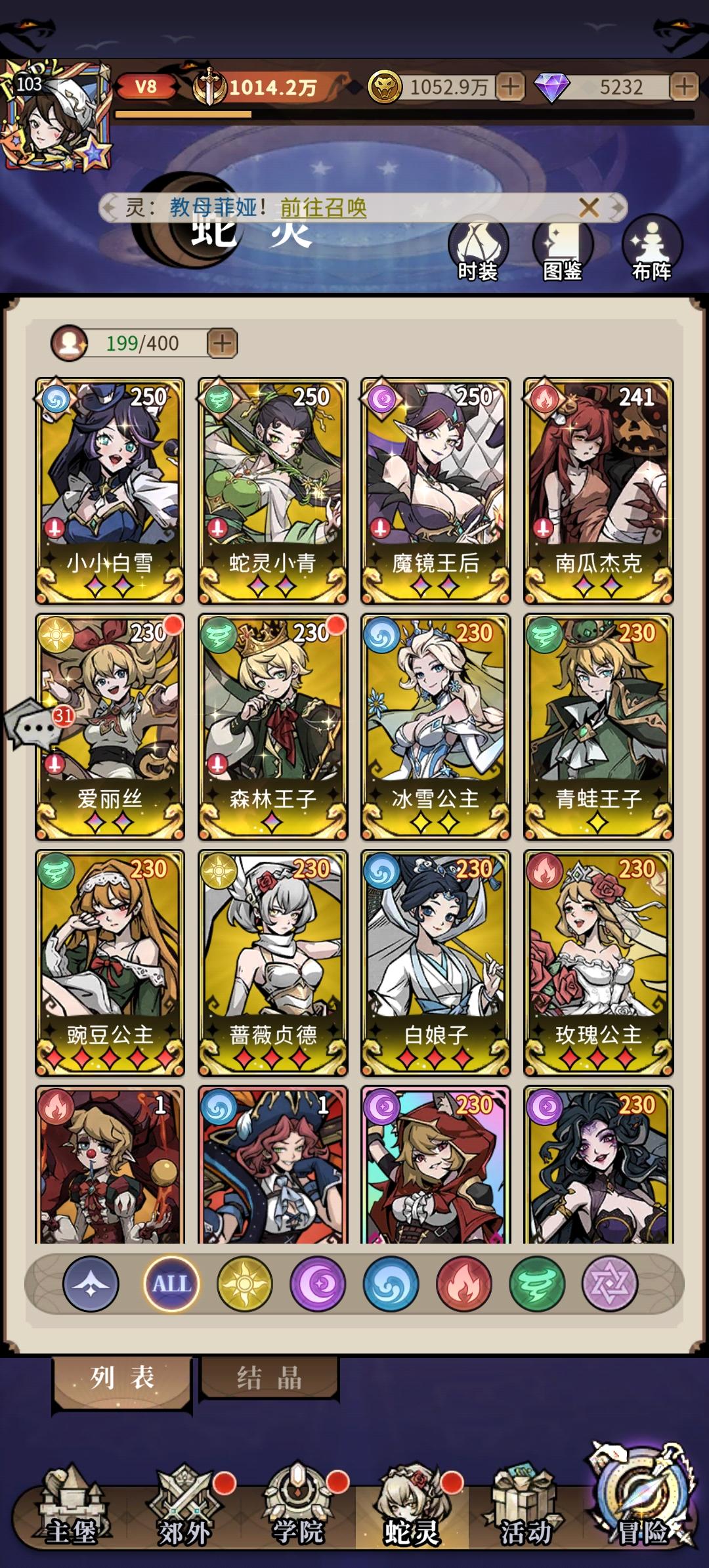 玩法很丰富就是可能刚开服花的时间有点多,每个人物都是一种黑暗童话蛇类的化身很有意思,画风也可以。爆率感觉有点低,第一天快结束的时候才出第三张金,更新时间是12点不喜欢,不匹配熬夜做任务的生物钟