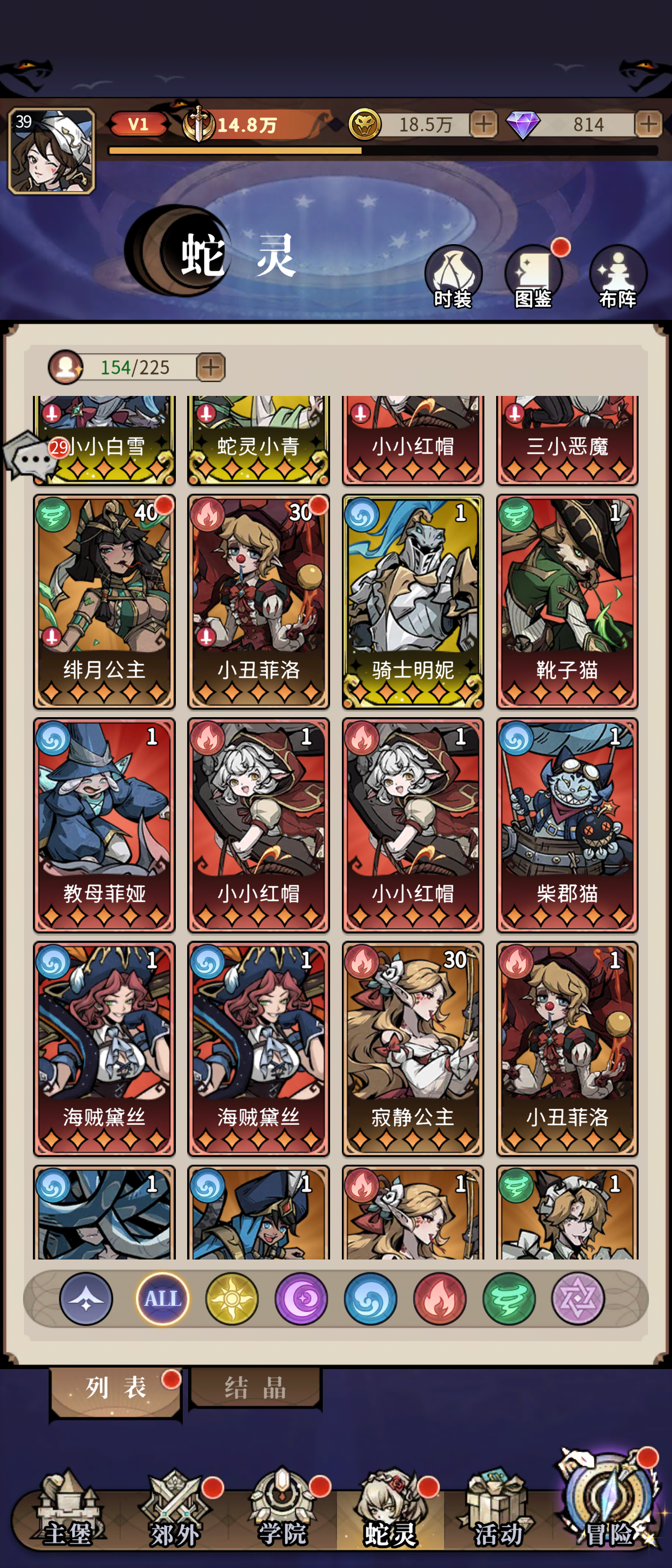 灰姑娘、红心主C获取难度低,每个星期都能稳定获取,搭配前排外婆挂毒,分摊伤害,都能给两个主c提供叠加伤害输出,灰姑娘百搭,堪比神卡,前期光暗资源不足用柴郡猫平替爱丽丝,前期柴郡猫甚至比爱丽丝好用,前期小青获取容易,残血收割,剩下一个位置,哪个本体多用哪个,这种玩法可以玩到后期,,前面提到两个主c,是因为有个活动要两队,个人觉得无脑堆灰姑娘,这张是一个争议卡,搭配培养的对用的很丝滑,也有人喷没输