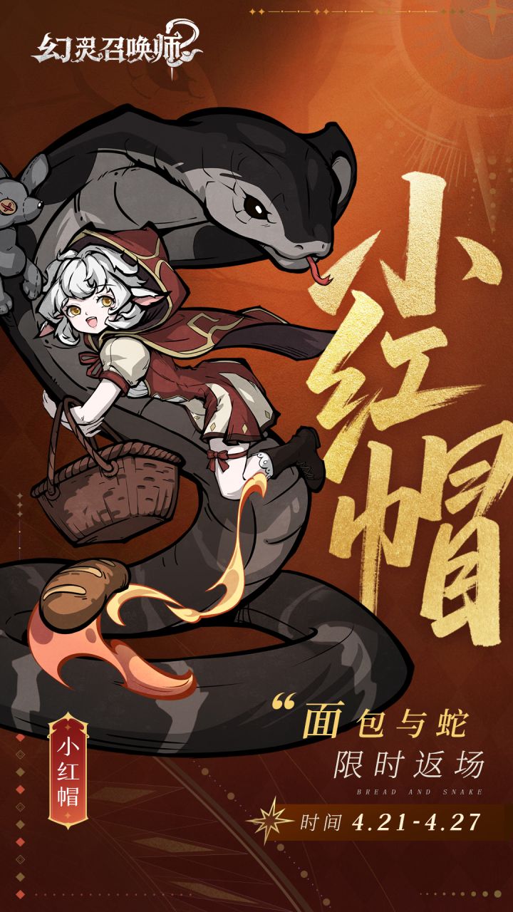 各位召唤师:经典角色【小红帽】【黑魔王】将于4月21日-4月27日限时返场,本次返场开放限时自选获取,召唤师们可在活动期间获取对应角色。角色介绍:▷ 小红帽:以童话为原型的蛇系角色,巨蛇相伴,灵动输出,兼具生存与爆发能力▷ 黑魔王:蛇影巫语掌控者,黑魔法输出核心,高爆发技能适配多阵容请各位召唤师留意活动时间,避免错过获取机会,如有疑问可在评论区留言反馈。#今天游戏圈发生了啥 #幻灵召唤