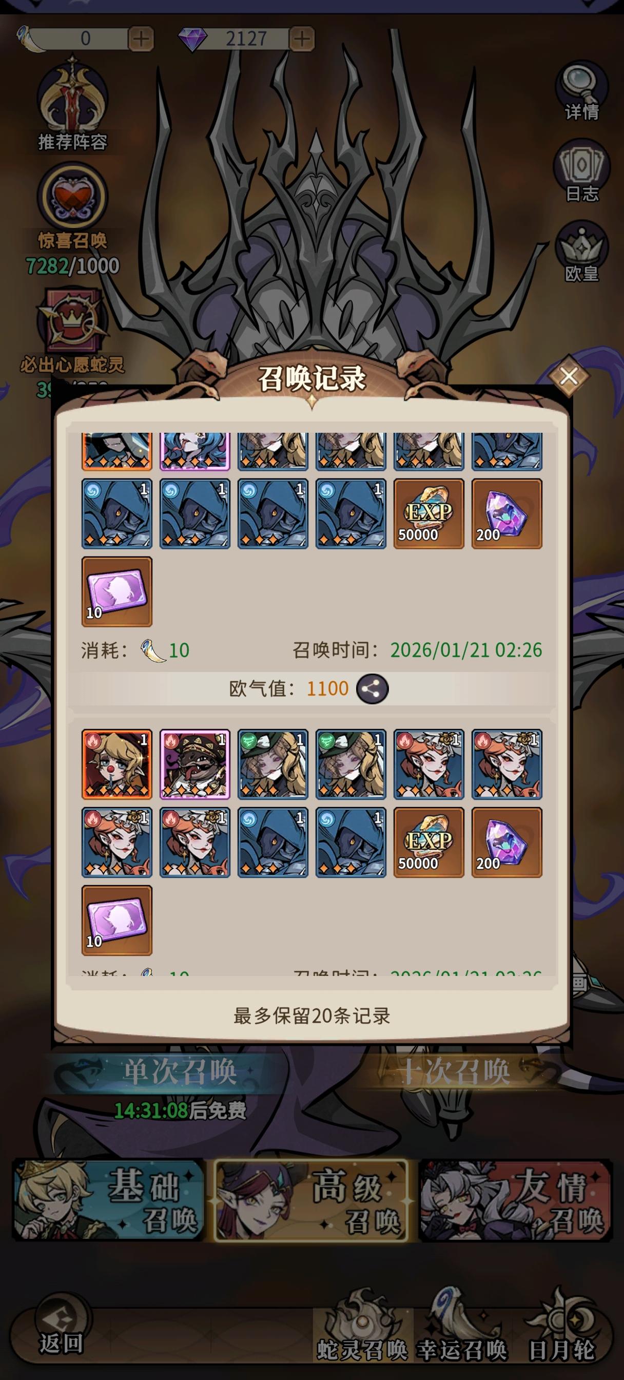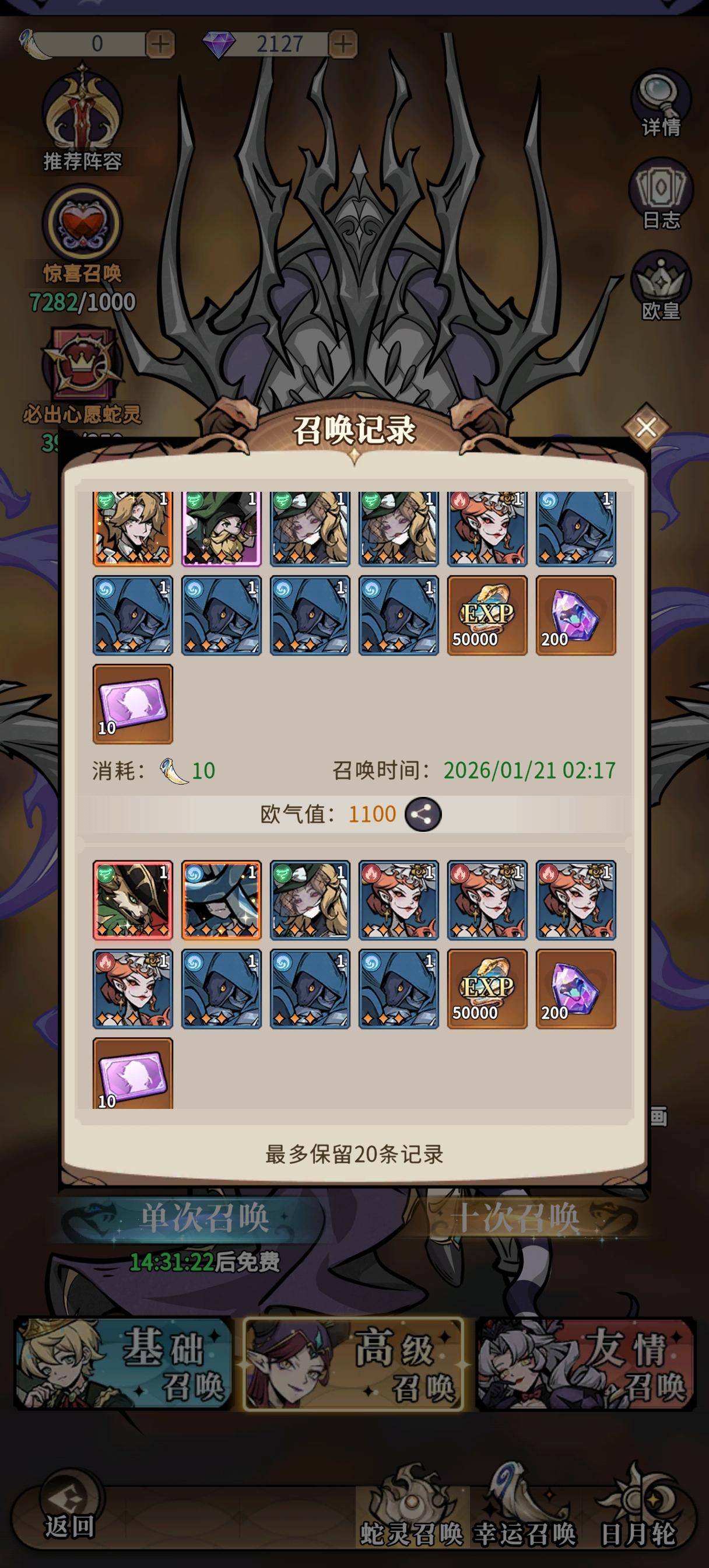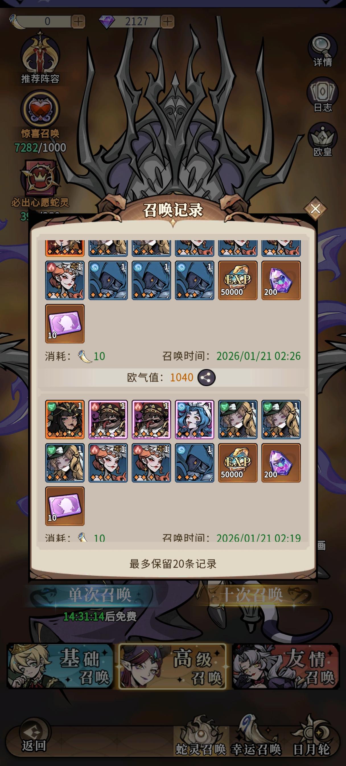 后面打算下掉小青小白,这两后面肯定要下,这两返场的概率极小,应该不会返场了,上八岐和光盾,这两个我本体多点,我阵容缺单体爆发,八岐刚好可以补强单点,光盾有更好的保护能力,双盾➕双奶➕双输出,后续有更好的输出下掉玫瑰,微氪300,27天,偶尔氪个6块,玩了一个月了能接受,后续钻石省着点应该不会充了,偶尔6块意思下就行了,钥匙和蝴蝶能囤,感觉囤两三期在抽更好