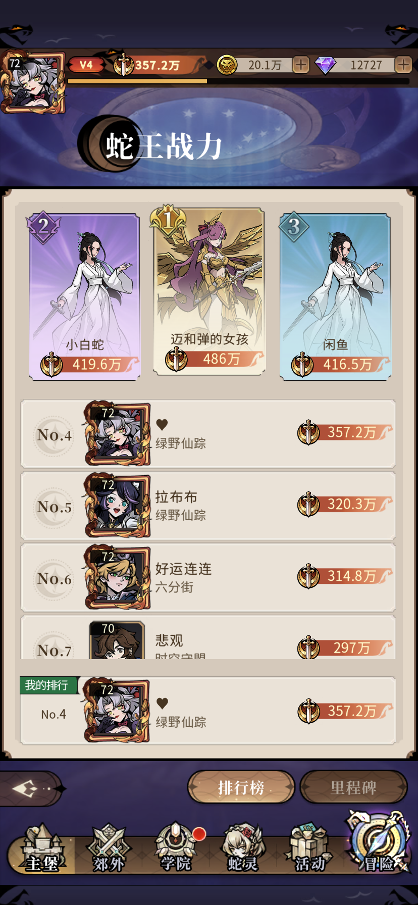 某些人别秀那点战力了,到我这打住吧,第二天207级白蛇,0氪 43.2万单核白蛇