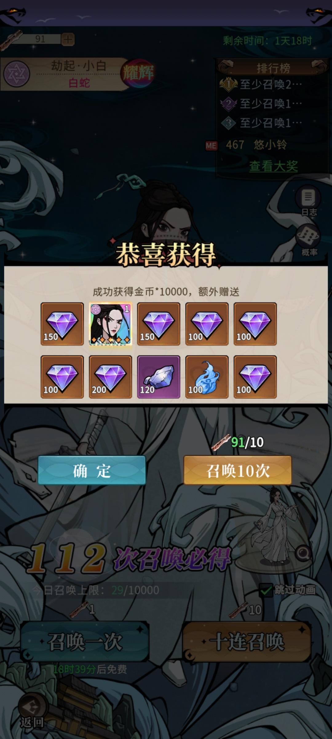 大家别秀了。我0氪 第二天15星白蛇