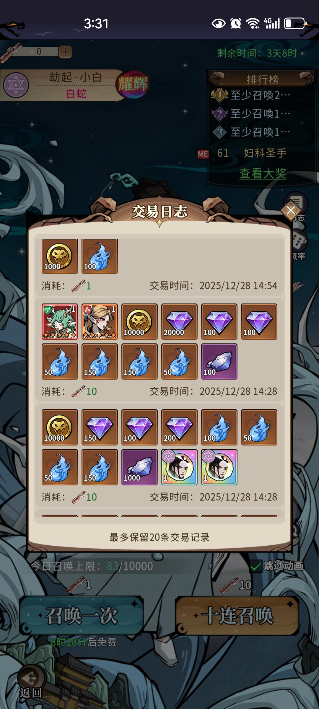 抽了380个卡,才抽到三个神话(小青是登录送的)