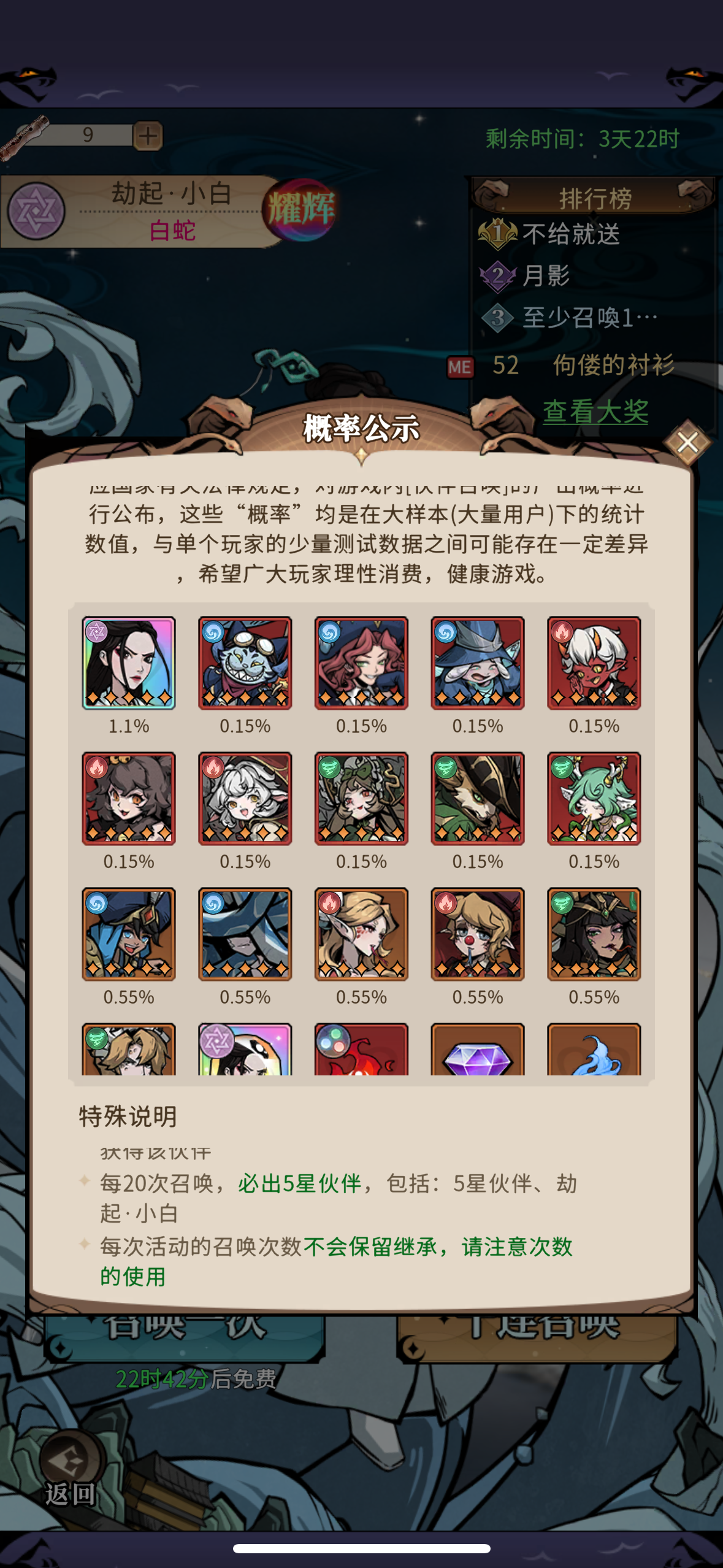这个抽小白的活动,明明写的每20次必出五星,有可能狗粮,有可能小白,我这最近的50抽成果如图,咋20次保底被吃了?玩不起就别玩,这都要造假