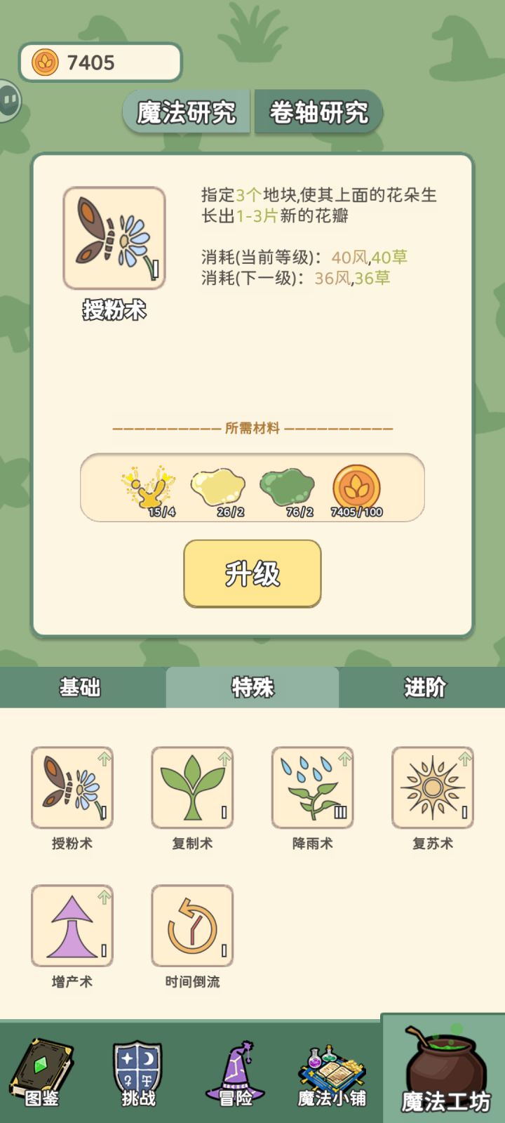雷电术➕迁移术➕再生术➕降雨术➕防护术,前面三个必带,防护术可有可无。游戏开始的前两回合最重要,尽量用纯色花偷坏花的花瓣,不要让对面一直开技能,特别是有复制术和再生术降雨术的一旦让他们发育起来后期要拖很久。有个技巧纯色花和杂色花一起放坏花旁边,比如坏花在最上面有粉花瓣和白花瓣,先隔一格放纯色白花,再在中间放杂色粉白花,那么这朵坏花所有花瓣都会被我们偷走。优先发育雷电术和再生术(最好满级),不