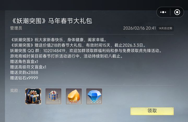 《妖潮突围》春节大礼包,新年快乐