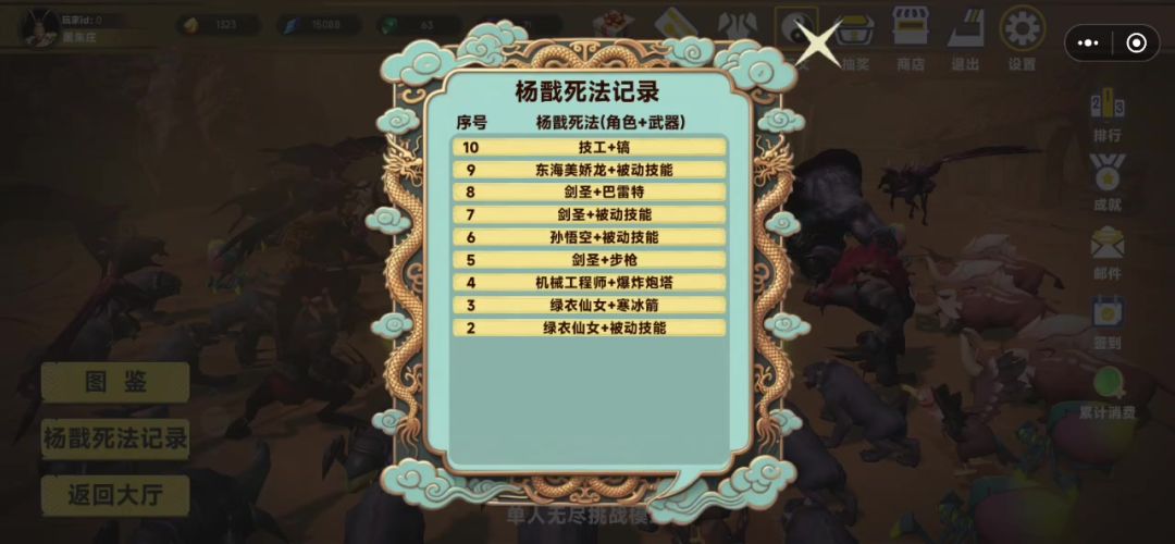 白骨精和弓箭绝配,四级弓箭属性和三级巴雷特差不多了,正好白骨精有120范围,范围给弓箭增加了输出伤害,出门到打boss一路轻松愉快。#妖潮突围 #发现好游戏