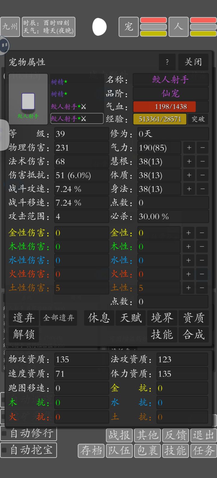 7.右上角【宠】界面与【人】类似,【合成】内可进行任意品种相同品阶的宠物之间的合成