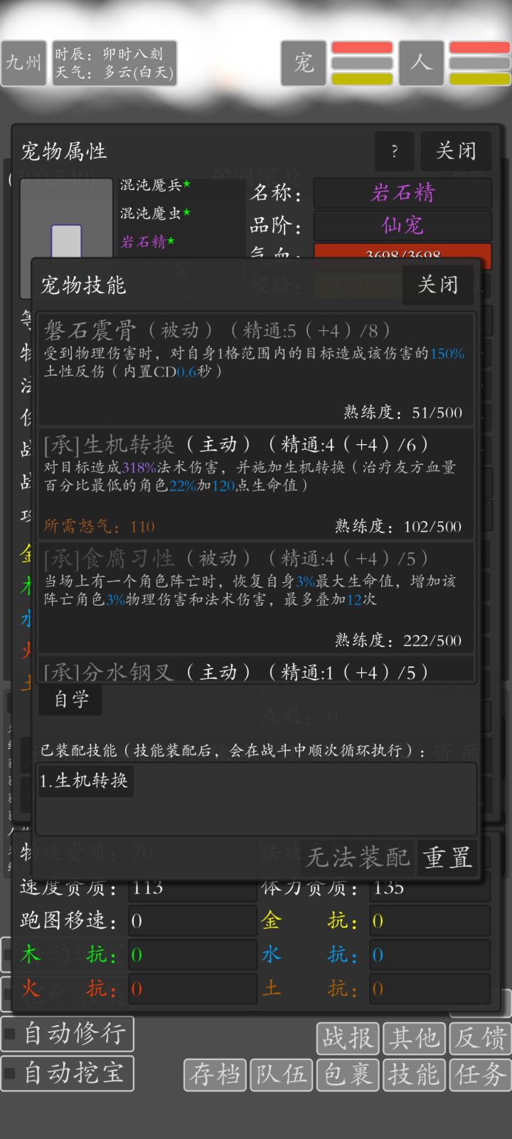 最后的怪打得过,但倒数第二关打不过。双t宠物。一个是大混血,技能只要三个僵尸+幽魂+狼。另一个是纯血地行蛇蛟,只混了一次树精。都是木体加点,装备找全五行全属性和扇子。最后放一个肝帝宠物公式。(主+主)+(主+副)20级,肝点是需求(主+主)为主宠,这样是(三级技能+副技能),否则是(二级技能+副技能)之后是+(主+副+副2+副三)作为副宠,由于副宠主宠随机,所以合成可能会报废,这样子好处是