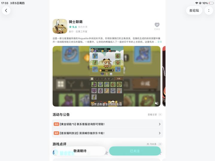 已关注Q版漫画风格的Roguelite休闲闯关手游骑士联萌。期待扮演熊猫滚滚,在随机生成的妖府洞窟中展开一场场既惊险又欢乐的冒险。期待体验随机出现的机关陷阱、未知的宝藏房间和千奇百怪的妖怪敌人,期待每一次冒险都充满新鲜感与挑战。
