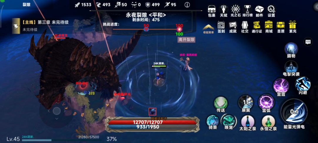 雷族天骄外出历练。发现裂缝BOSS狂战魔龙。使用天雷封魔阵把BOSS封印在深山中。用天雷狂轰!请看vsr[表情_微笑]