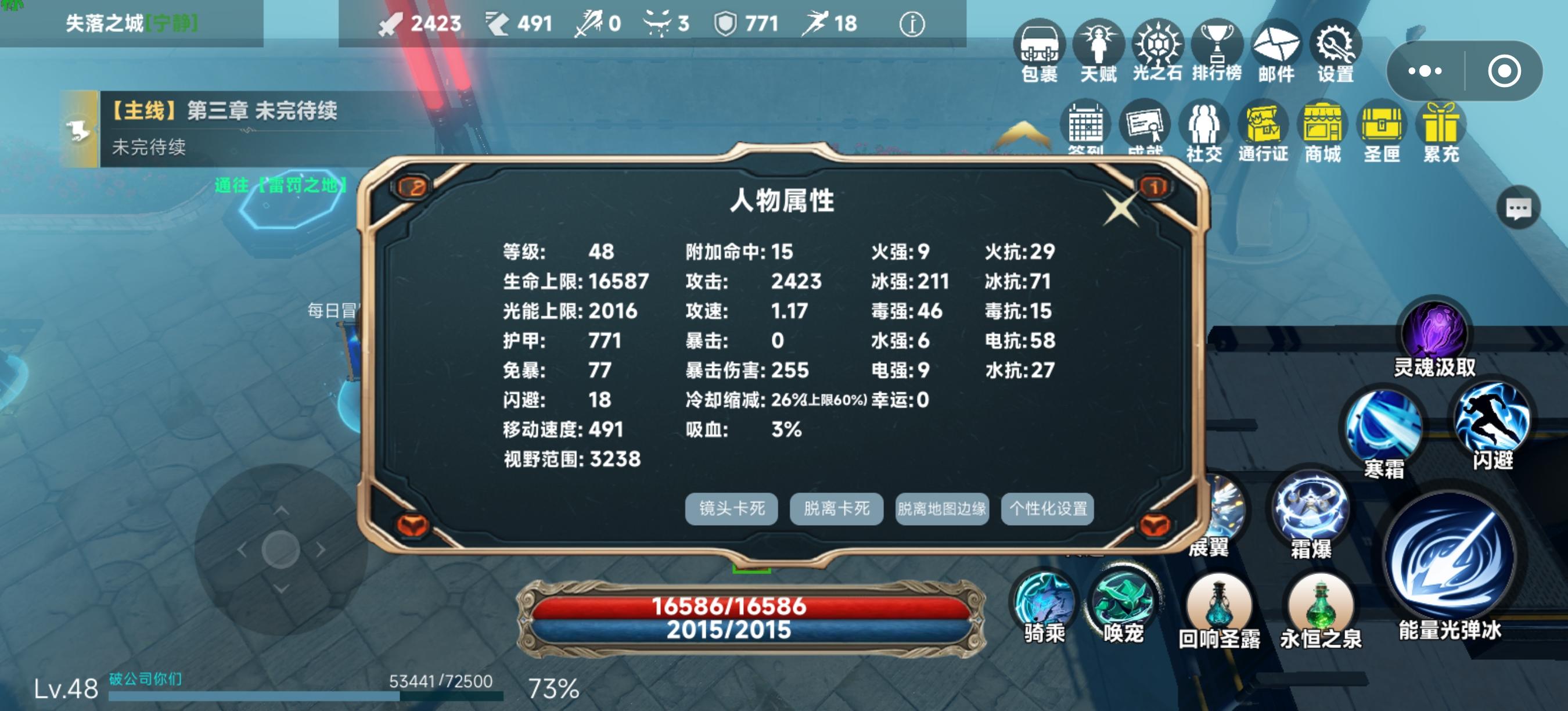 在上坐骑的时候刚好死亡就会卡bug,回到村里人物会卡在图外,或者看不到角色如图,动也动不了,位移也没用,麻烦解决一下。