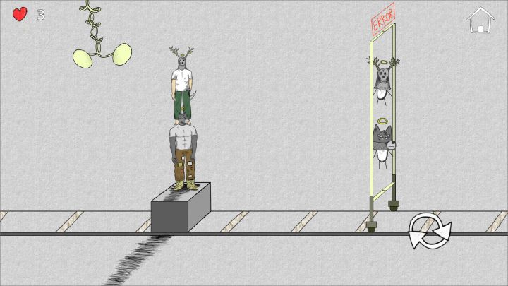 好玩~玩法上特别烧脑子,要不是看过攻略,我怕是玩一个小时都不知道第一关第二关怎么过了。完全不按正常的来,全是变着法来的,玩懵了都。不过也得,剧情上,这俩是被打嘎了升天了,要想复生就得集齐笑脸。升天了的地方,逻辑跟现实倒着跑也没毛病。画风也是很升天了,抽象感满满,脖子上顶个香蕉,需要的就是TA的脑壳。那一关几个提要求的全跟耶稣似的,搁十字架上待着。讲故事那里,估计讲的就是俩嘎之前的事情。就是