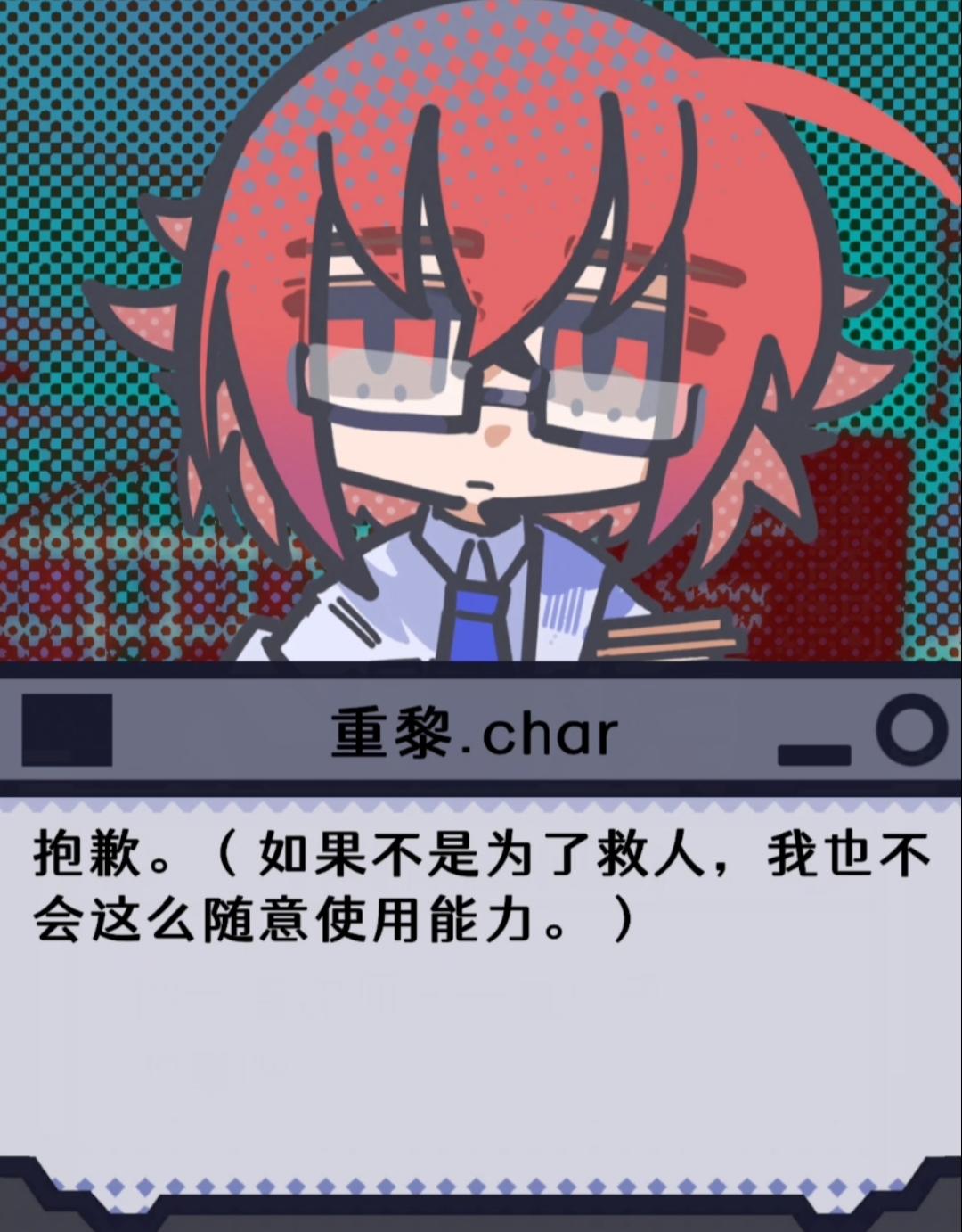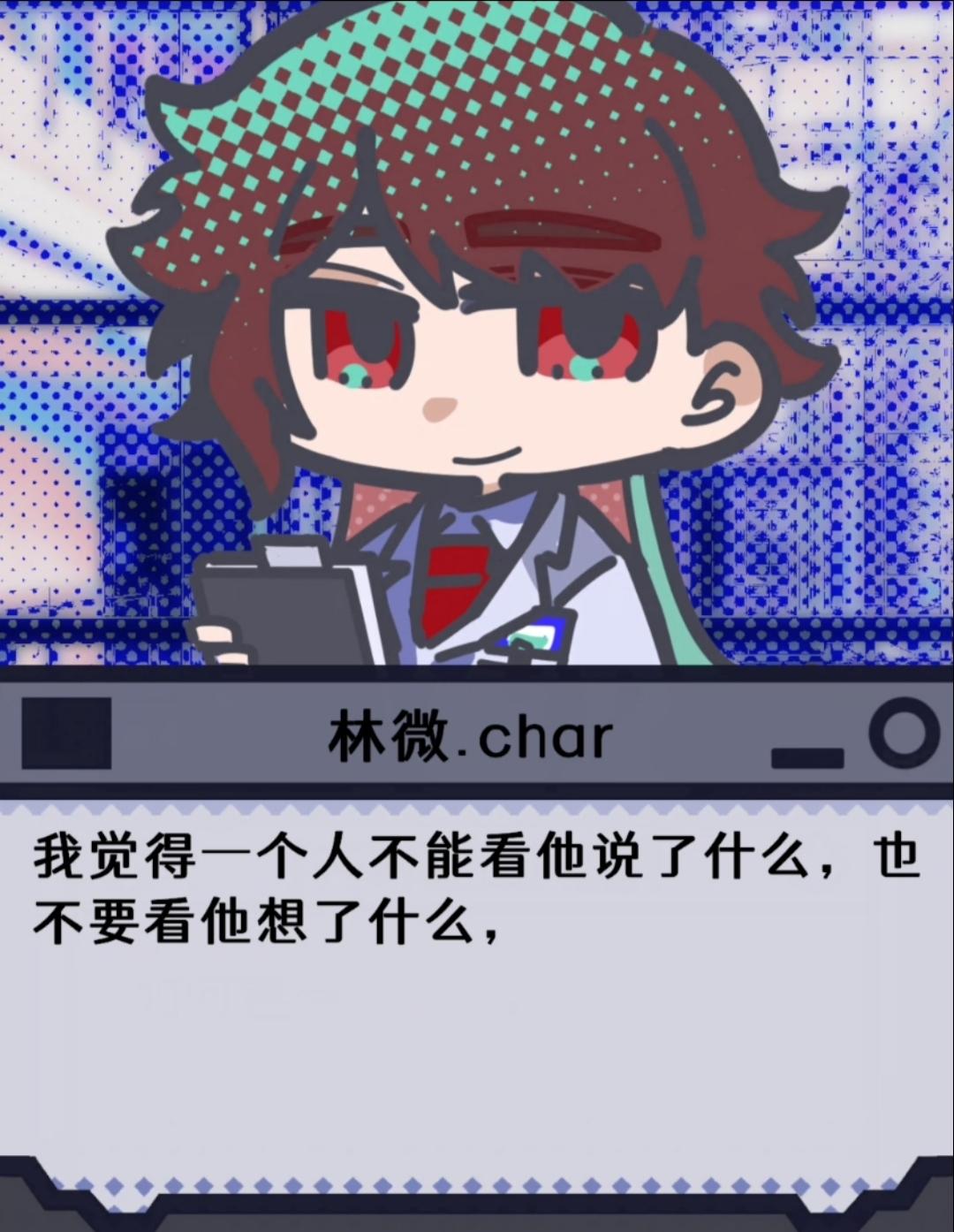 游戏还有另一个文案老师负责第二章,因为时间以及gamejam期间无法更新的原因,可能暂时放不出来,但请老师期待第二章的更新,无论是立绘还是剧情都很精彩,再次谢谢你喜欢主角酱,小沈,小林和老李,这四个可能诞生了只有不到三周的角色。🥺🥺🥺他们有这么能懂他们的玩家老师也会感觉很高兴的!
