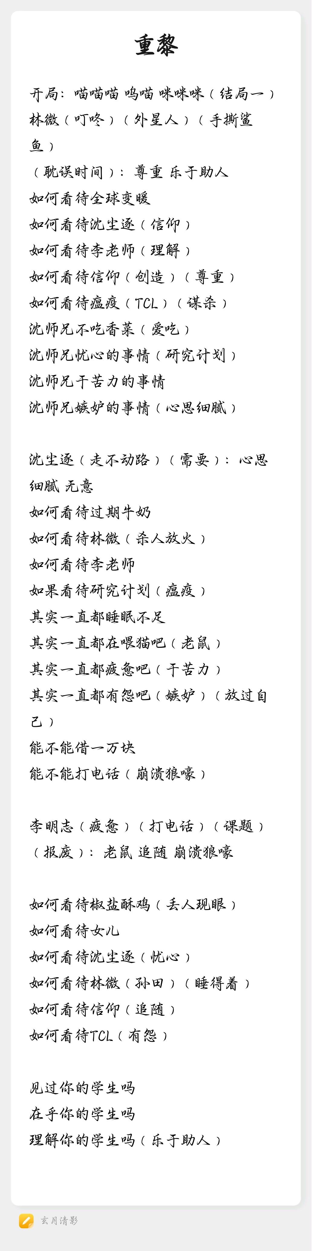 传了一些截图,师兄实在是太温柔了……有些词没有触发到,但即使如此我也重生了8回才通关demo仙品游戏啊,很细腻的感情和文字,还带有冷幽默和高级反讽,意义深刻对出场人物的一些主观点评:✰我(重黎)善良,道德感强,任劳任怨卑微打工人,重情重义✰沈尘逐温柔,男妈妈,容易内耗(这难道不是因为过于善良和真性情了么),感性>理性,非常可靠,略微傲娇,刀子嘴豆腐心,社会责任感很强ps:一心想研究
