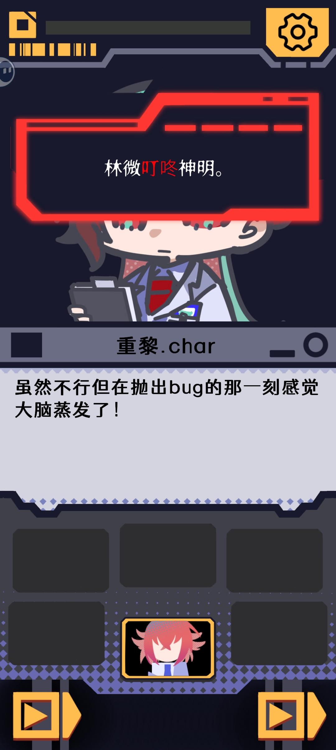 打了几百字评论,一个失误重写了我真是…这是一个非常优秀的游戏。无论是从画风、剧情还是趣味性都是十分优秀,仅仅是几个人,在几句话间就把人物复杂面塑造出来,只是几段对话,却能同时阐述有关人性与神的道理。世界观很有趣,而且很能调动起来情绪。只是有些短了,希望大大能快快更,能免费玩到这种游戏真是荣幸之至。