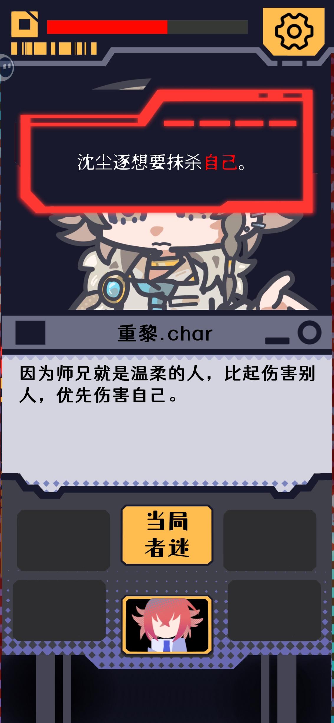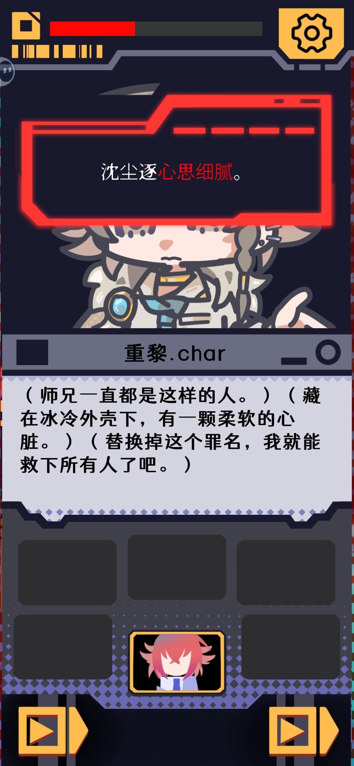 传了一些截图,师兄实在是太温柔了……有些词没有触发到,但即使如此我也重生了8回才通关demo仙品游戏啊,很细腻的感情和文字,还带有冷幽默和高级反讽,意义深刻对出场人物的一些主观点评:✰我(重黎)善良,道德感强,任劳任怨卑微打工人,重情重义✰沈尘逐温柔,男妈妈,容易内耗(这难道不是因为过于善良和真性情了么),感性>理性,非常可靠,略微傲娇,刀子嘴豆腐心,社会责任感很强ps:一心想研究