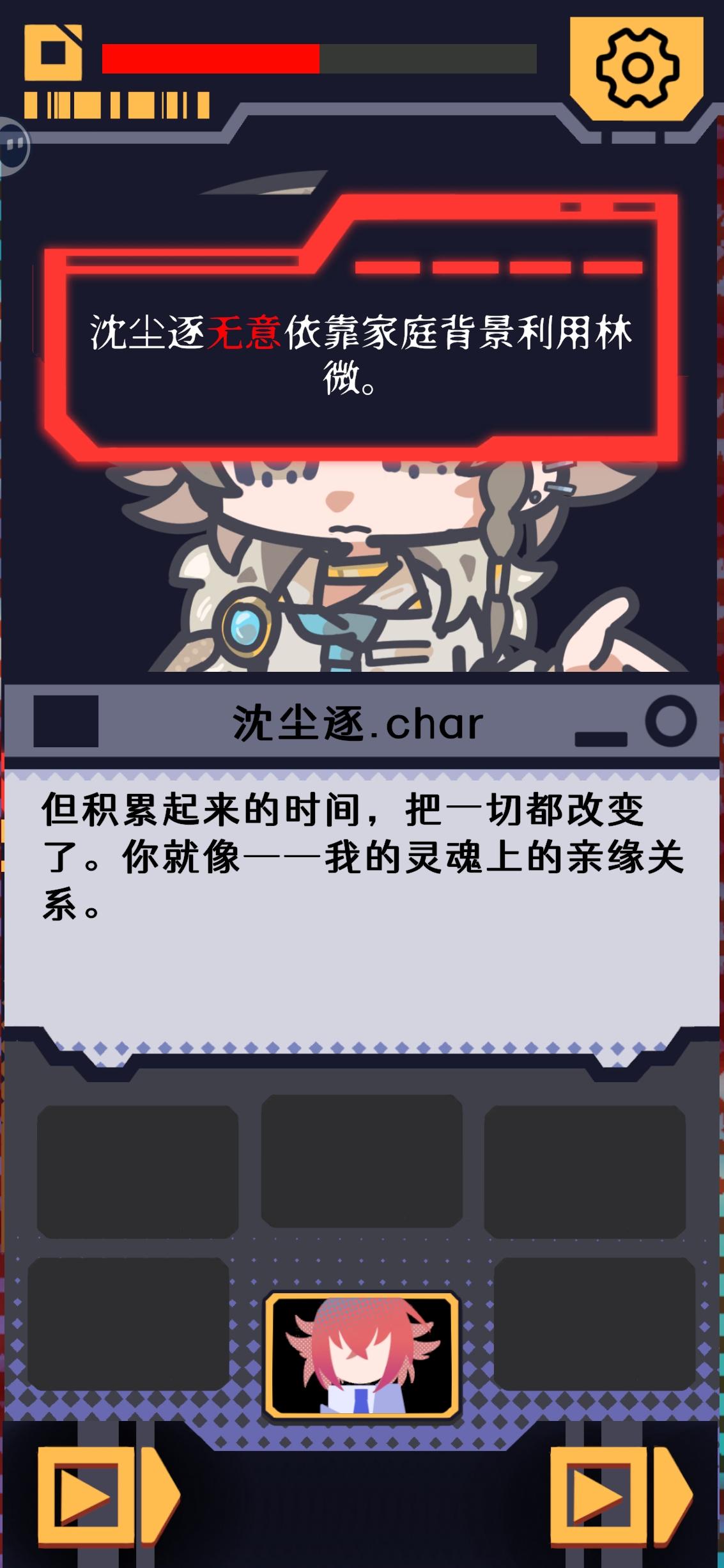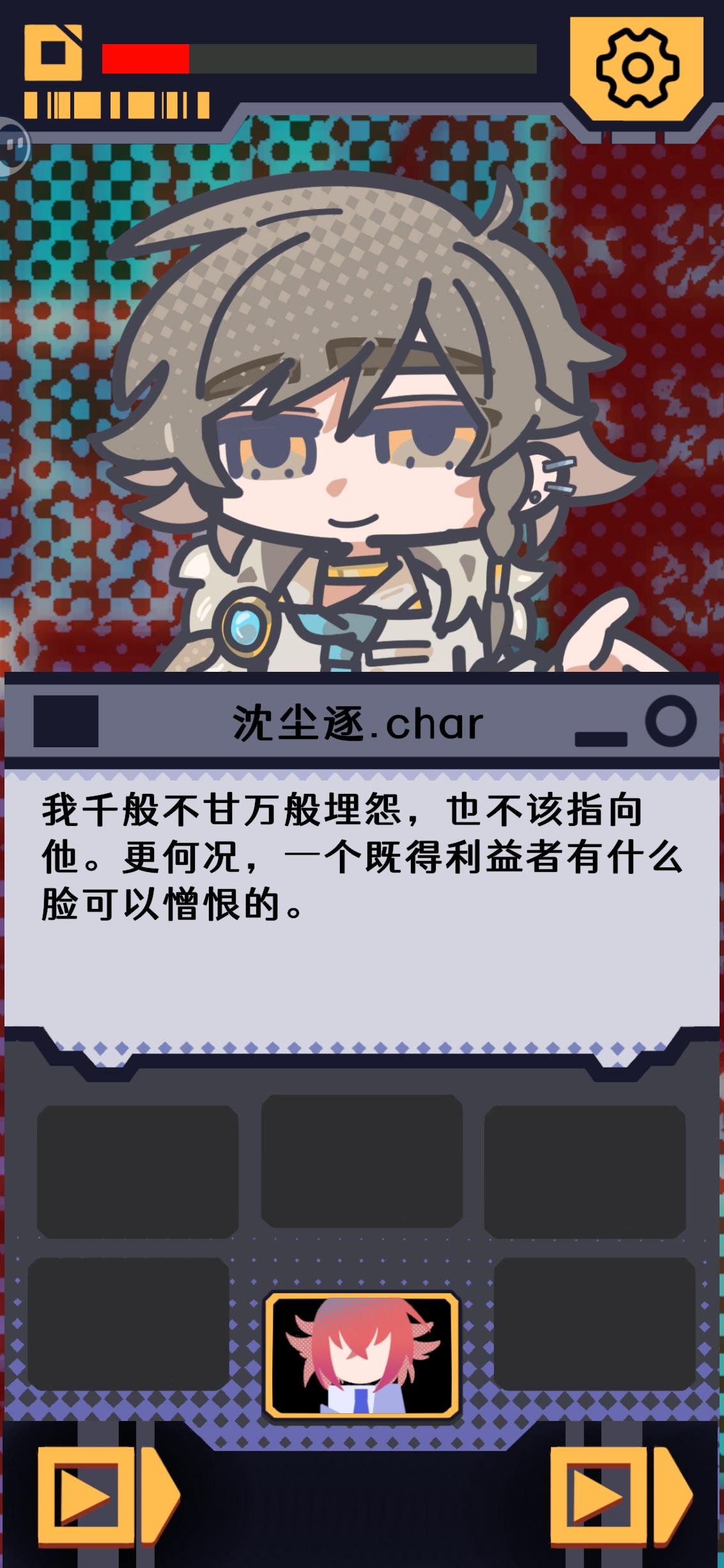原本是冲着画风玩的,玩了一半发现剧情很对我胃口,以及死的时候我一直在感叹,轮回敢死队又添一名猛将hhh(轮回的设定看多少次都不腻啊QvQ)每个人物出来画风我都要截屏好几次,真的好喜欢啊啊最后剧情还没怎么搞明白,就被所有人的人设震惊了,尤其是沈师兄T-T,刻画的真的很好这个所谓审判的天庭,感觉都快把主角逼疯了(主角在我手里轮回了十几次 是我太菜了QxQ)让我惊讶的是主角轮回十几次以上,竟然没