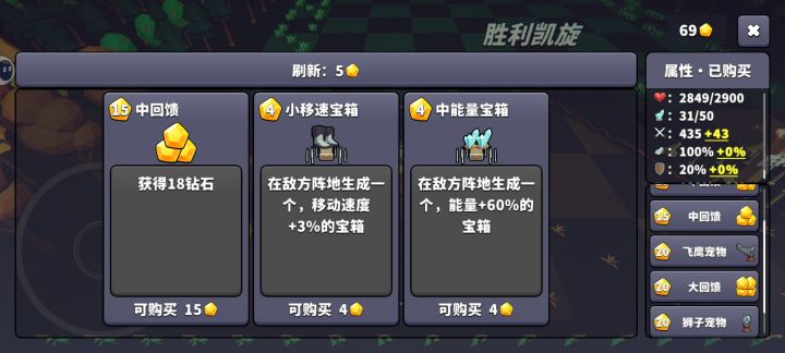 接着是技能,宝箱这个概念好奇怪,我现在还不清楚这个宝箱加成和直接加成到人物身上有啥区别,哪怕有区别我想提出点是要让玩家知道区别在哪里(比如告知玩家购买之后是每回合有一定几率刷对应的宝箱,我到现在其实都有点不确定是不是这个意思)包括这个成长是这回合还是持续到本局游戏,这个我认为是有必要和义务告知玩家的,这个我认为是扣分项