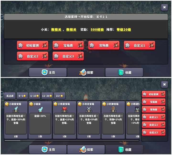 2,初始就可以自己设定牌组,但卡牌大多都是提升基础能力的,比较厉害的都是20多块的宠物,除了增加设定稀有度外,也可以增加卡牌的流派构筑,例如已经有的能量流派,宠物流,还有暴击流,盾盾流,移速流,火球流,毒流等等,增加卡牌之间的联动性。