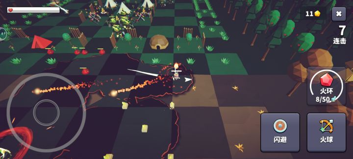 核心战斗与前一部是不同类型,类似平面肉鸽,操作是动作游戏类的键位布局,支持自动射击,右侧有主动技能可以释放。有详细的背景板提示,上手很容易。开战之前可以光顾商店,消费金币购买一些增强道具,金币统筹是核心策略。战斗开始后主角会自动烧坏地图,把敌人帐篷烧坏可以获得更多资源,有可操作性。
