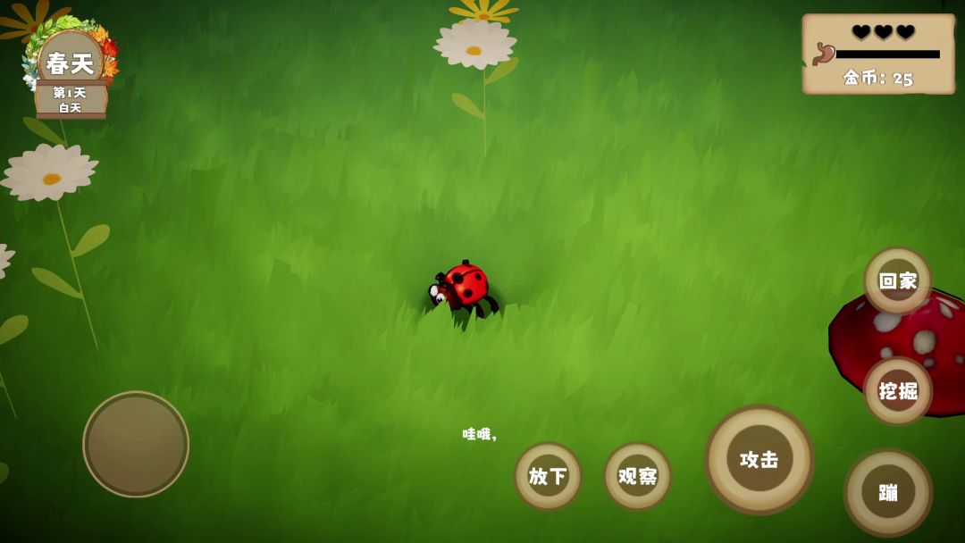 《我是虫虫》玩家扮演一只可爱瓢虫在陌生的野外环境中进行为期12天的探索生存,利用资源保卫自己的家园。 #游戏安利 #游戏推荐 #游戏攻略