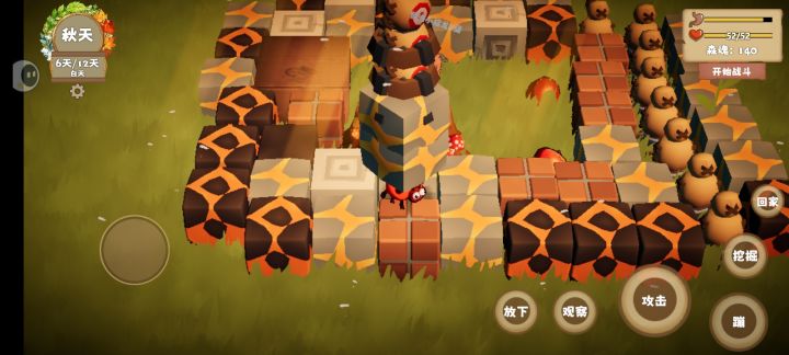 萌新注意事项1.饥饿值—虫虫攻击树木能掉下苹果,贴近苹果点击观察,选择吃后,右边会出现个嘴巴👄,反复点击嘴巴就可以补充2.泥块的话实测用处不是很大,个人建议用玩偶替代泥土,挖掘的时候尽量在地图的边缘上挖掘,挖掘需要在原地点四下左右直到爆物,如果不是自己要的东西,就往左或者往右移动,直到他不提示。暂时无法挖出东西位置,玩偶放在家周边就行,入侵者会主动攻击玩偶3.守家首要推荐还是龙蛋,龙蛋这个爆