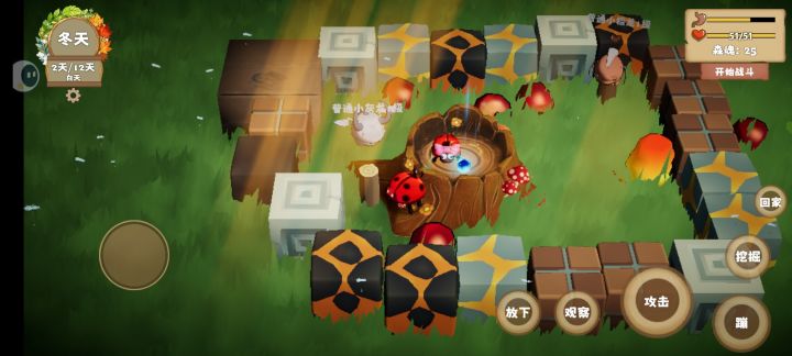 萌新注意事项1.饥饿值—虫虫攻击树木能掉下苹果,贴近苹果点击观察,选择吃后,右边会出现个嘴巴👄,反复点击嘴巴就可以补充2.泥块的话实测用处不是很大,个人建议用玩偶替代泥土,挖掘的时候尽量在地图的边缘上挖掘,挖掘需要在原地点四下左右直到爆物,如果不是自己要的东西,就往左或者往右移动,直到他不提示。暂时无法挖出东西位置,玩偶放在家周边就行,入侵者会主动攻击玩偶3.守家首要推荐还是龙蛋,龙蛋这个爆