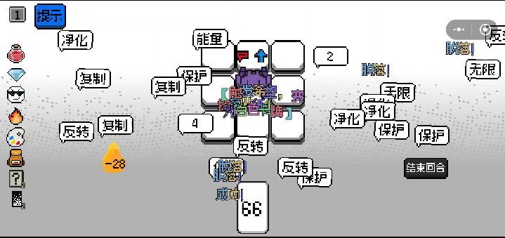 红色 ——回合结束后有概率对场上所有敌人造成1点伤害黄色 ——下回合有概率额外获得1能量蓝色 ——回合结束后有概率随机冻结1个敌人橙色 ——回合结束后有概率对场上所有敌人造成2点伤害绿色 ——回合结束后有概率随机净化1个地块1级紫色 ——回合结束后有概率使场上随机1名敌人随机移动并造成1点伤害黑色 ——回合结束后有概率使场上一个格子变黑原始色(白色)—— 无效果#发现好游戏#游戏攻