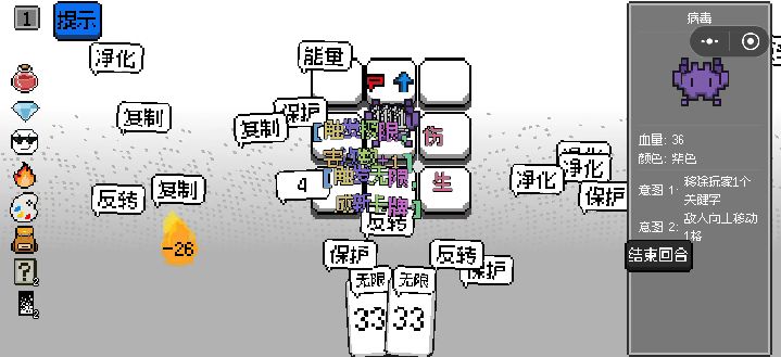 怎么获得胜利?很简单,打败所有敌人就能获得战斗的胜利啦为什么会输?当场上的所有格子都被敌人(或者自己)染黑了就gameover怎么打败敌人?有很多种方式可以打败敌人,包括:使用带数值的卡牌拖动到场地中任意一个格子上(黑色除外,因为黑色已经被污染了)当一个黄色的敌人走到了一个红色的格子上(黄+红=?,是爆炸,会对所有敌人随机造成伤害)回合结束按钮染色,没错,不同颜色的回合结束按钮会有